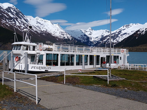 Around 1:15 p.m., after getting set up we decided to drive into Girdwood and check on availability of the Portage Glacier Cruise at the Portage Glacier Lodge.
