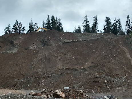 Where the dump truck was going up the hill to the left was the area that was marked "No Trespassing" because it goes directly into the mine site.